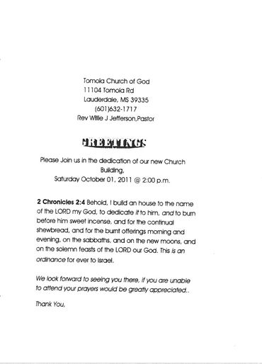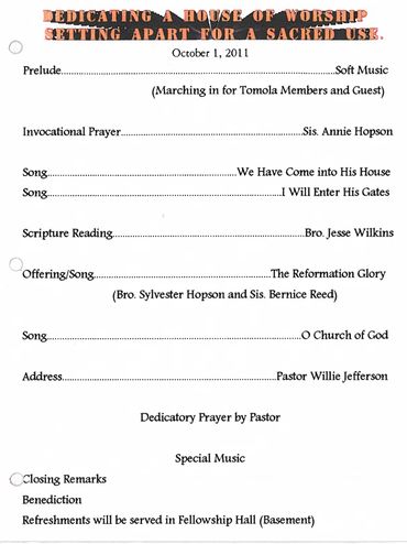 TOMOLA CHURCH OF GOD’S CHURCH DEDICATION